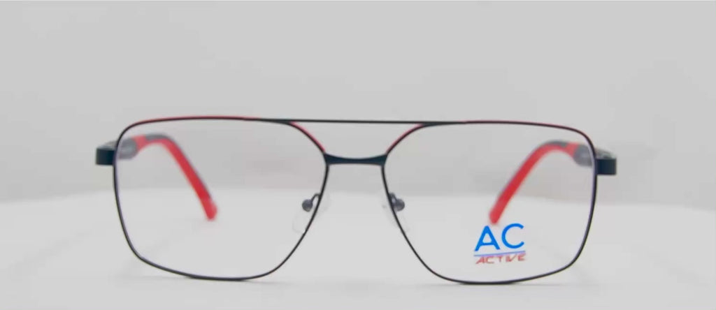 Lentes oftálmicos AC ACTIVE AC6065 RED 59 15 143. En forma Rectangular, hexagonal. Marco de metal color gris oscuro, varillas de pasta gris con naranja. Peso: 23.5 g