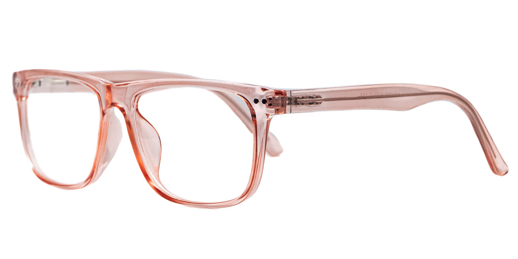 Lentes oftálmicos ACROPOLIS AC1028 52 17 142. En forma cuadrada-rectangular, marco de pasta color rosa traslucido, varillas delgadas de pasta color rosa traslucido. Peso: 25.9 g