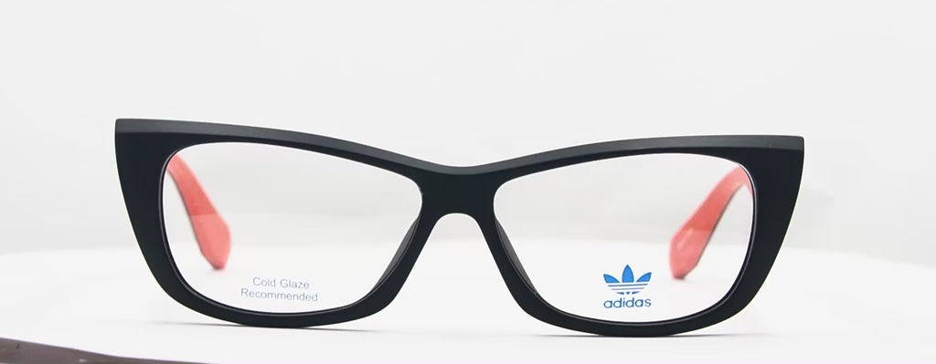 Lentes oftálmicos ADIDAS OR5010 002 55 13 140. En forma cuadrada/ cat eye, marco de pasta color negro, varillas gruesas color negro con naranja. Peso: 27.4 g