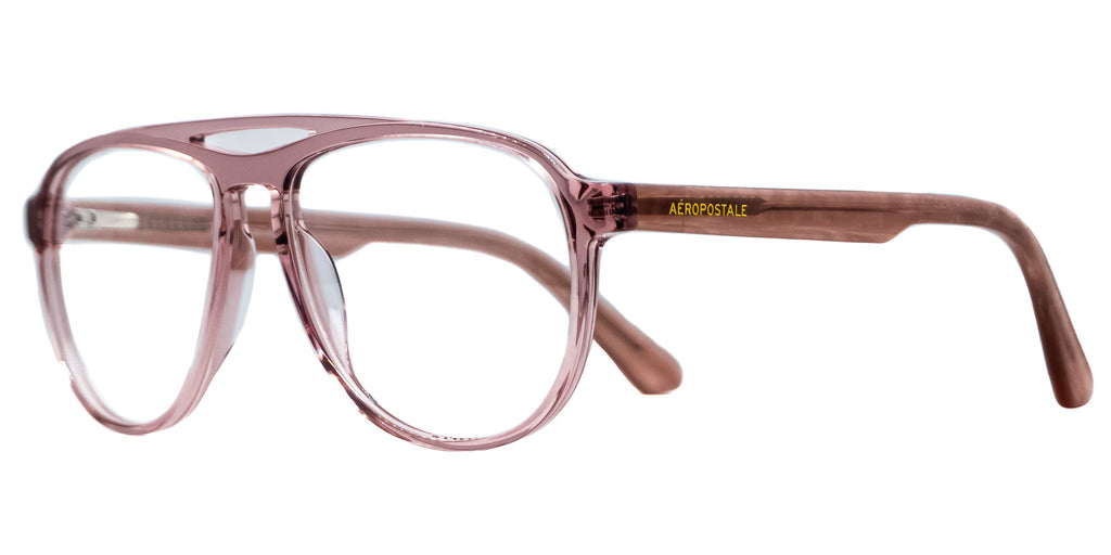 Lentes Oftalmicos AEROPOSTALE VAE L09YL 0PNK 57. En forma ovalada estilo aviador, marco de pasta color rosa viejo traslucido, varillas delgadas de pasta rosa viejo traslucido. Peso: 26.8 g