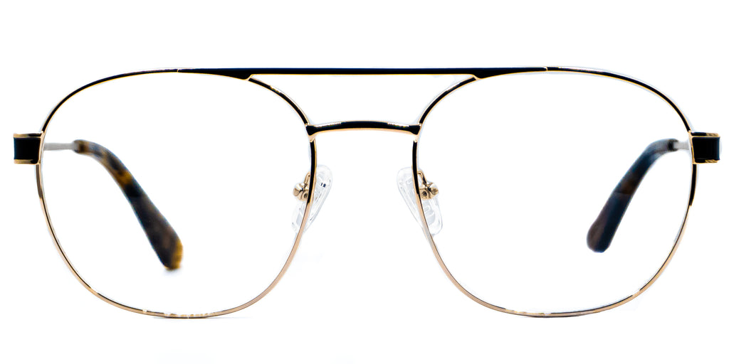 Lentes Oftalmicos AEROPOSTALE VAE L29YL 0GLD 56. En forma ovalada estilo aviador, marco de metal color dorado, varillas delgadas de metal color dorado, terminacion en pasta color negro con cafe carey. Peso: 26.6 g