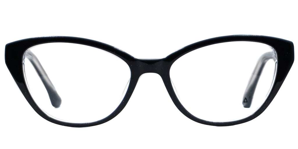 Lentes Oftalmicos AEROPOSTALE VAJ 13432 0BLK 48. En forma ovalada estilo cat eye, marco de pasta color negro con brillo, varillas delgadas de pasta color negro con brillo. Peso: 28.1 g