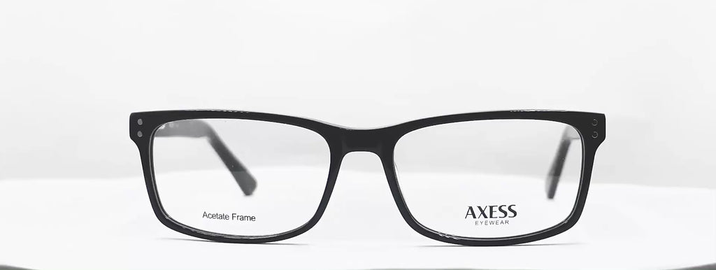 Lentes oftálmicos AXESS 5055BLACK 56 17 145 POM1. En forma cuadrada, marco de pasta color negro completo, varillas delgadas de pasta color negro. Peso: 25.8 g