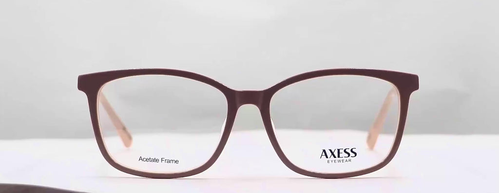 Lentes oftálmicos AXESS 5091 BEIGE 54 16 143 POM1. En forma cuadrada, marco de pasta color cafe oscuro, varillas delgadas de pasta color cafe traslucido. Peso: 22.1 g