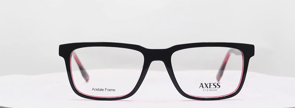 Lentes oftálmicos AXESS 5096 BLACK RED 53 17 140 POM1. En forma cuadrada, marco de pasta color negro con naranja, varillas gruesas de pasta color negro con naranja. Peso: 24.4 g
