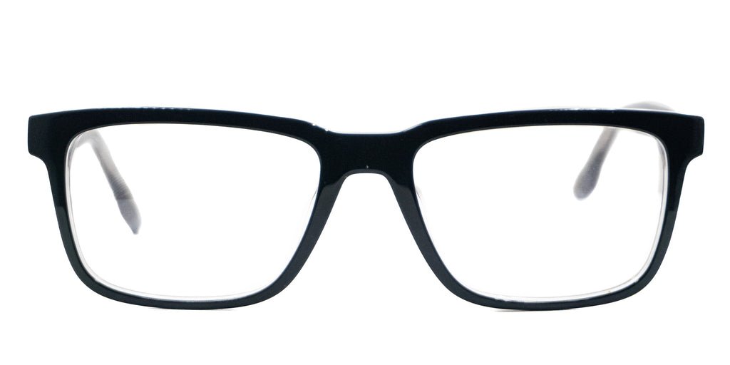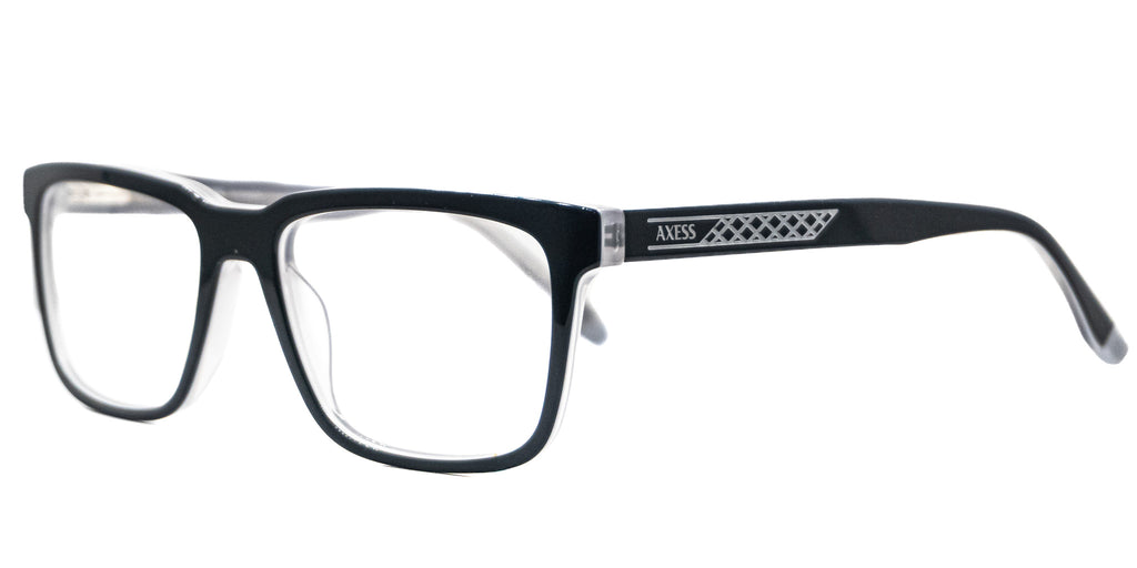 Lentes oftálmicos AXESS 5096BLACK GREY 53 17 140 POM1. En forma cuadrada, marco de pasta color negro con transparente, varillas delgadas de pasta color negro. Peso: 23.9 g