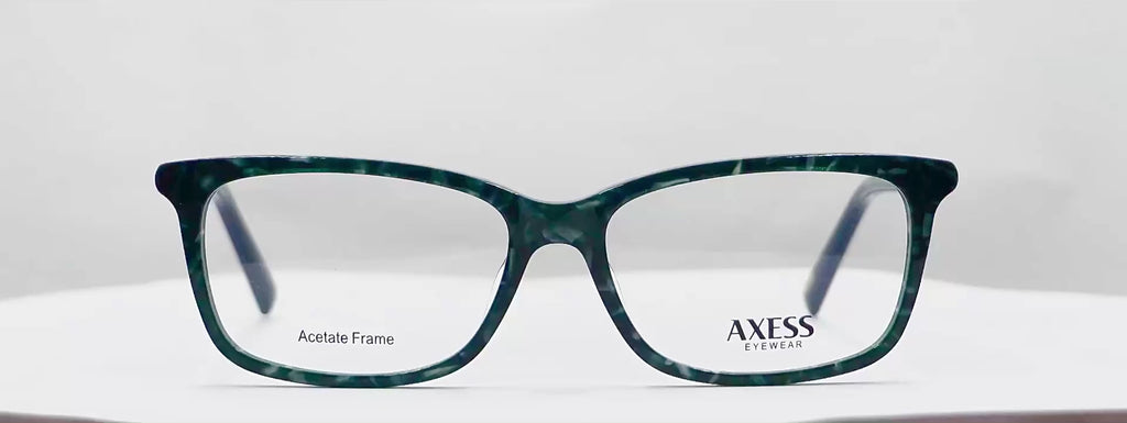 Lentes oftálmicos AXESS 5098 BLUE TORTOISE 54 15 140 POM1. En forma cuadrada, marco de pasta color verde oscuro carey, varillas delgadas de metal color dorado con terminacion en pasta verde oscuro carey. Peso: 23.8 g