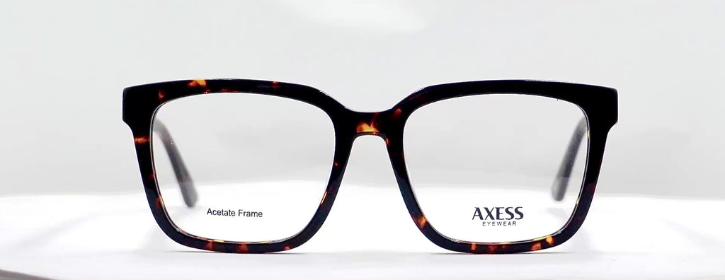 Lentes oftálmicos AXESS 5105DEMI 55 19 145 POM1. En forma cuadrada, marco de pasta color negro con naranja carey, varillas gruesas de pasta color negro con naranja carey. Peso: 30.1 g