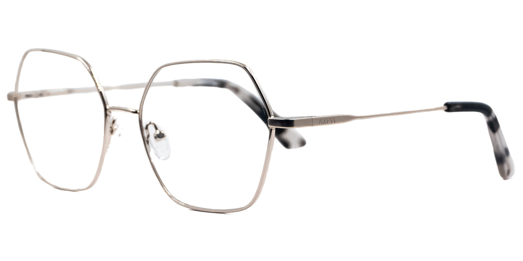 Lentes oftálmicos AXESS CLIP 3139 SH L GOLD 54 17 140 POM7. En forma hexagonal, marco de metal color dorado, varillas delgadas de metal dorado con terminacion en pasta carey cafe, con sobrepuesto negro. Peso: 30.4 g