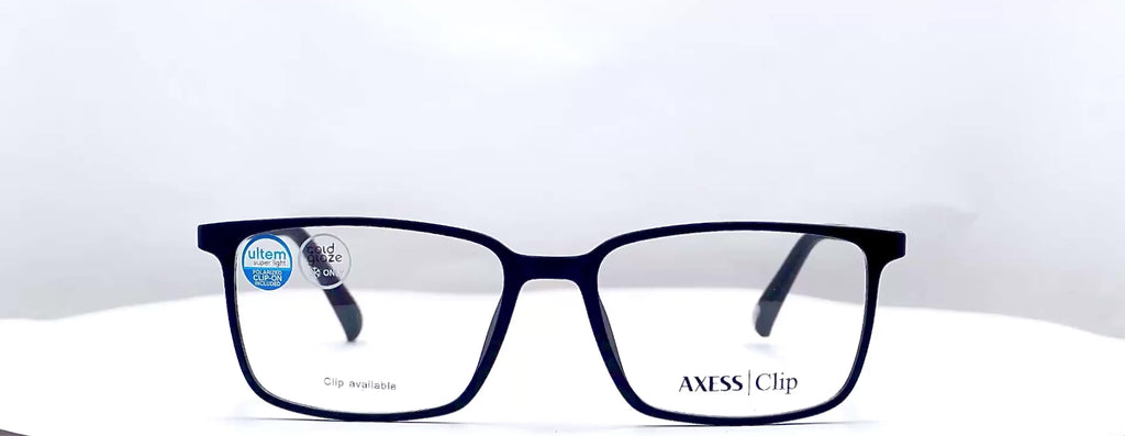 Lentes oftálmicos AXESS CLIP 6502 M BLACK BLUE 55 17 145. En forma rectangular, marco de pasta color negro mate, varillas delgadas de pasta color negro mate, con sobrepuesto negro. Peso: 22.1 g