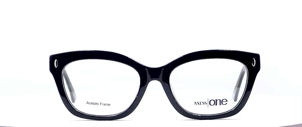 Lentes oftálmicos AXESS ONE 1470 SHADOW 54 19 145 POM1. En forma ovalada-trapezoide, de pasta color negro completo, varillas gruesas de pasta color negro. Peso: 30.7 g