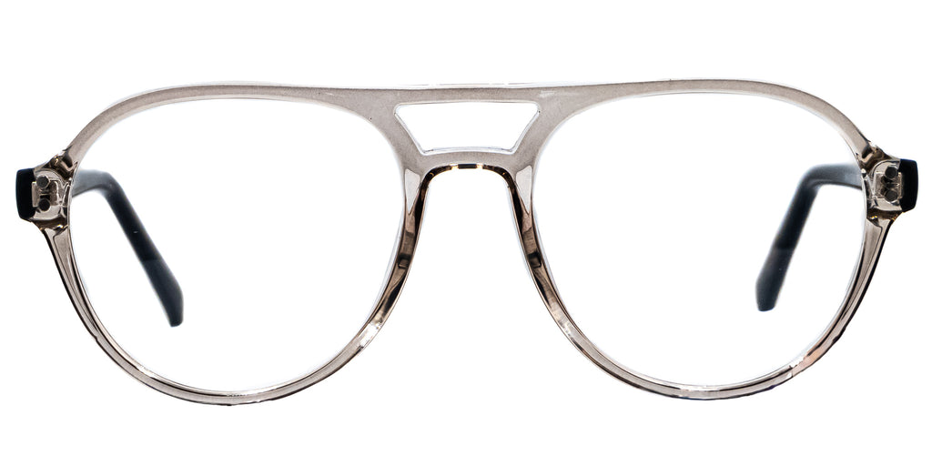 Lentes oftálmicos BRAVO 8416 CLEAR GREY 51 18 140 POM10. En forma circular tipo aviador, de pasta color gris traslucido, varillas delgadas de pasta color negro. Peso: 22.3 g
