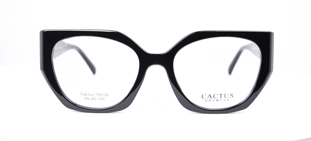 Lentes oftálmicos CACTUS CACTUSTR108 55 20 145 C1 en forma cuadrada circular cat eye. Marco de pasta negro completo oscuro. Varillas gruesas de pasta negro completo oscuro. Peso: 28.7 g