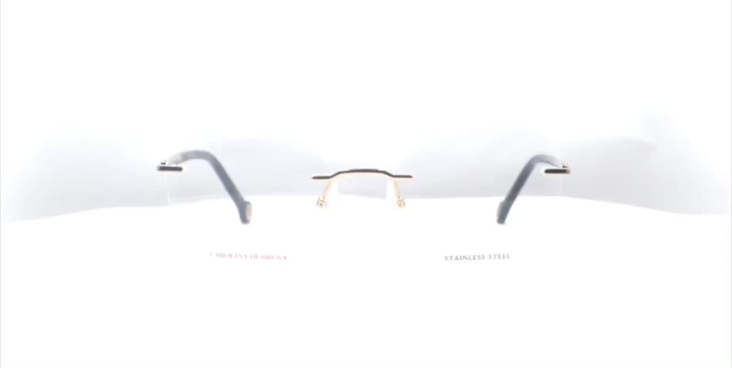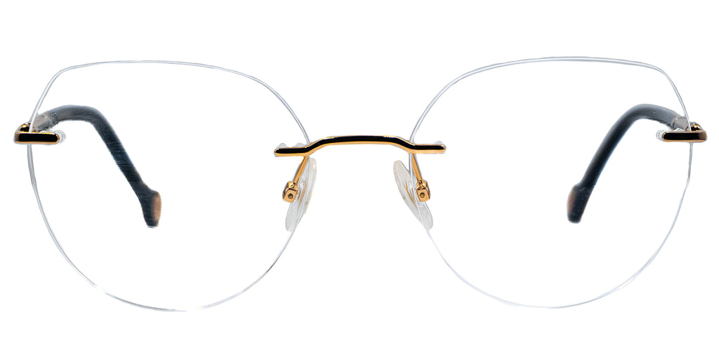 Lentes oftálmicos CAROLINA HERRERA HER 0235 RHL 140. En forma hexagonal 3 piezas, de metal color dorado, varillasdelgadas de metal color dorado con terminacion en pasta negro. Peso: 22.1 g