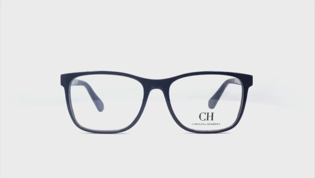 Lentes oftálmicos CAROLINA HERRERA VHE858N COL 0D82 145. En forma cuadrada- rectangular, marco de pasta color azul marino oscuro, varillas delgadas de pasta color azul marino oscuro. Peso: 25.7 g