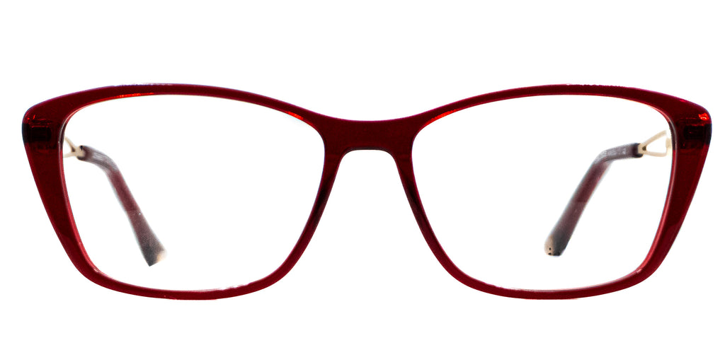 Lentes Oftalmicos CHRISTIAN BACH CBJ 3036 WINE 54 16 140. En forma cuadrada, marco de pasta color rojo cereza, varillas delgadas de metal color dorado con terminacion en pasta color rojo cereza. Peso: 19.7 g