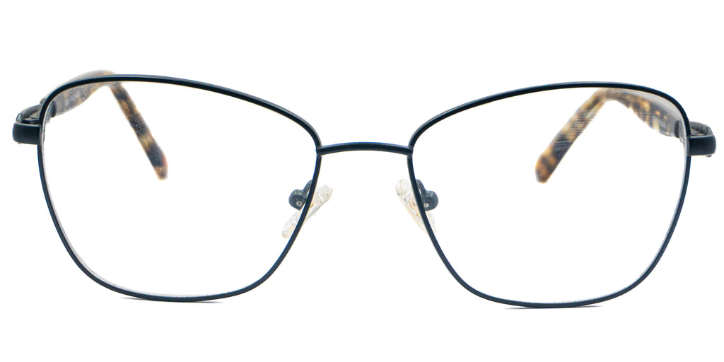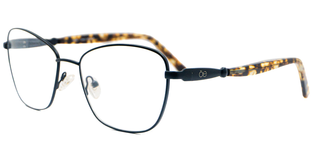 Lentes oftálmicos CLOE VLE 32228 0BLK 54. En forma ovalada trapezoide, marco de metal color negro completo, varillas delgadas de metal color negro con terminacion en pasta color cafe carey. Peso: 23.6 g