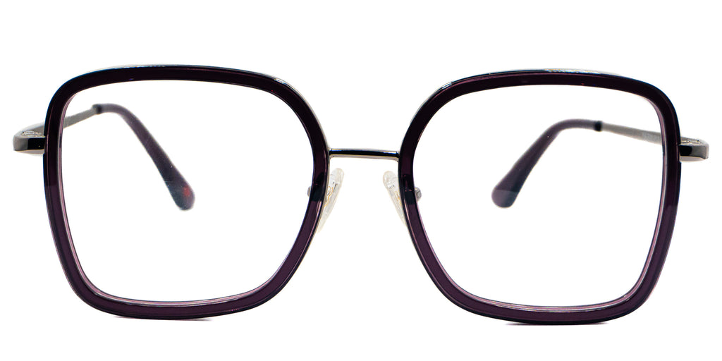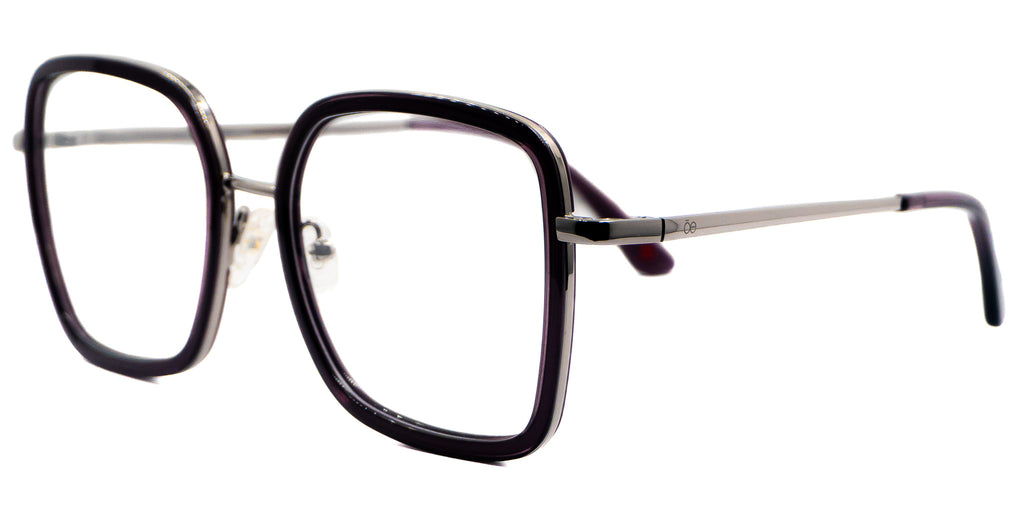 Lentes oftálmicos CLOE VLE 32265 0PUR 54. En forma cuadrada, marco de pasta color negro con completo, varillas delgadas de metal color plateado con terminacion en pasta color negro. Peso: 38.2 g