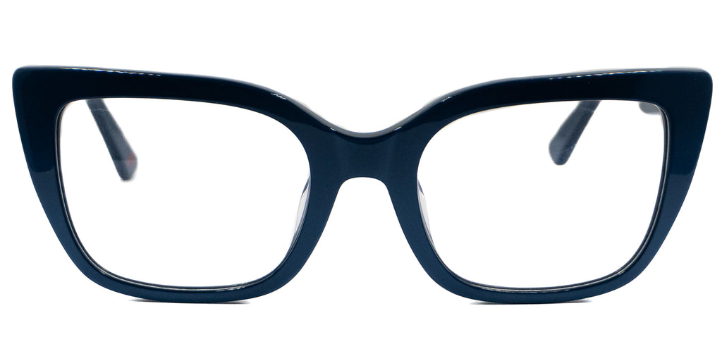 Lentes oftálmicos CLOE VLE 41635 0BLU 53. En forma trapezoide cuadrada estilo cat eye, marco de pasta color azul marino oscuro, varillas gruesas de pasta color azul marino oscuro. Peso: 30.7 g