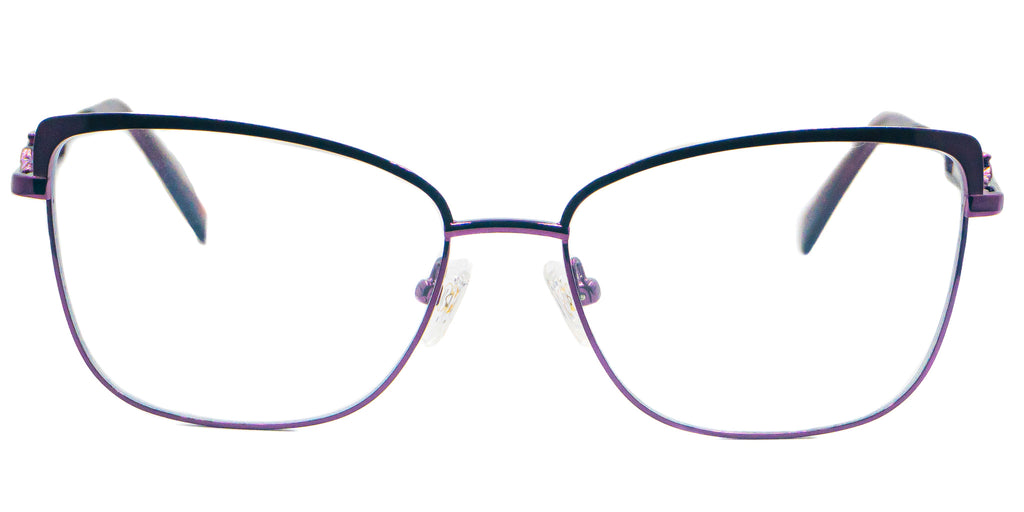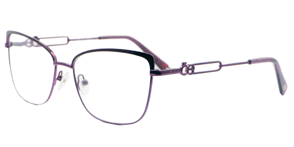 Lentes oftálmicos CLOE VLE 51606 0PUR 56. En forma trapezoide estilo cat eye, marco de metal color morado oscuro metalico, varillas delgadas de metal color morado oscuro metalico con terminacion en pasta color morado. Peso: 24.0 g