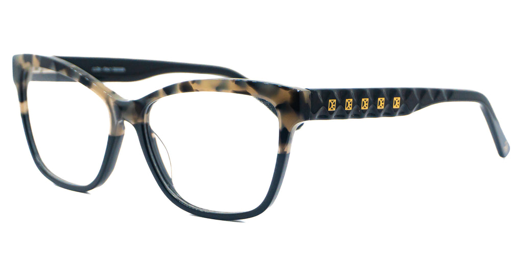 Lentes oftálmicos CLOE VLE 60097 0DMI 56. En forma rectangular, marco de pasta color negro con beige carey, varillas gruesas de pasta color negro. Peso: 27.1 g