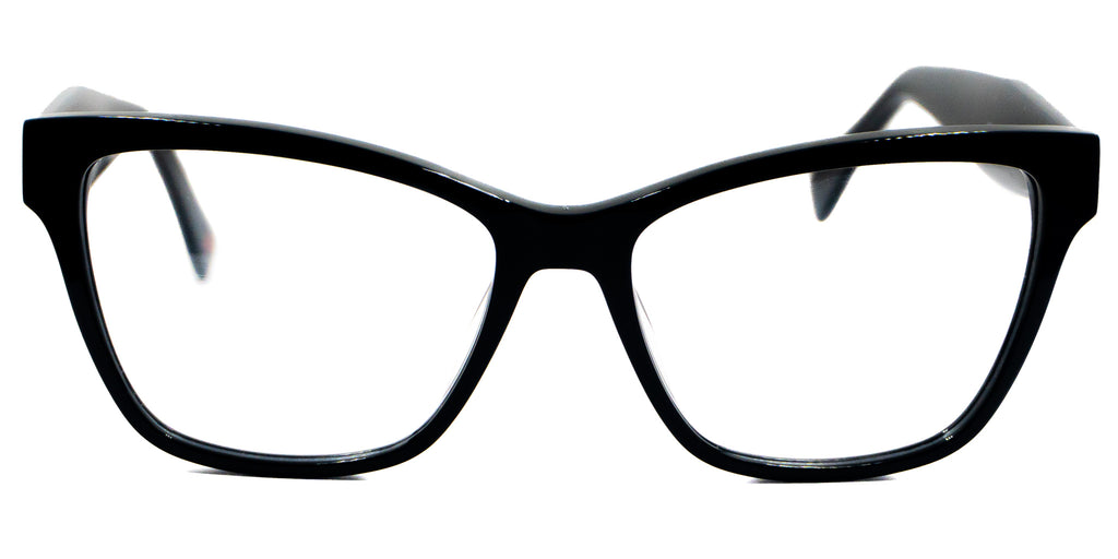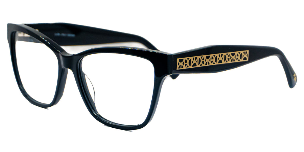 Lentes oftálmicos CLOE VLE 60099 0BLK 55. En forma cuadrada cat eye, marco de pasta color negro completo, varillas gruesas de pasta color negro completo con diseño dorado en los laterales. Peso: 33.2 g