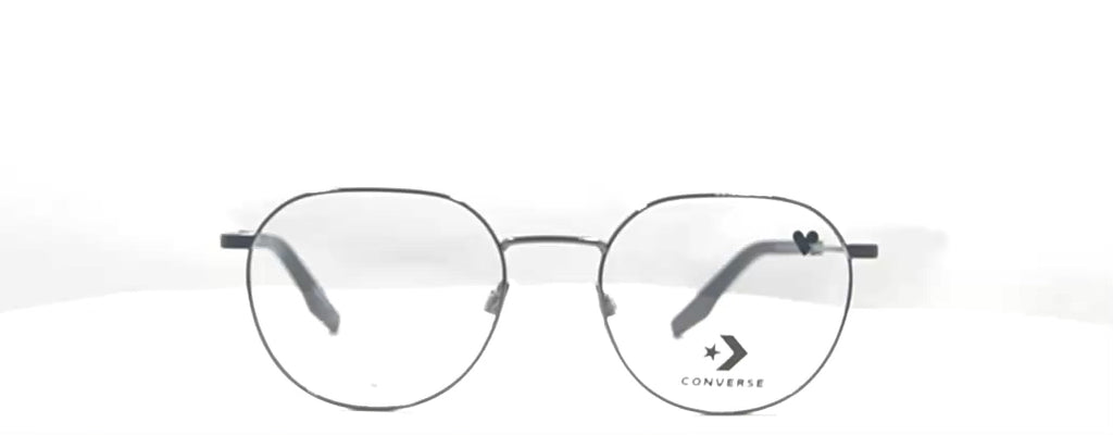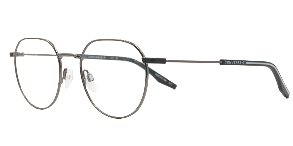 Lentes oftálmicos CONVERSE CV1019 070 51 19. En forma redonda. Marco de metal color gris oscuro, varillas delgadas de metal color gris oscuro. Peso: 16.6 g