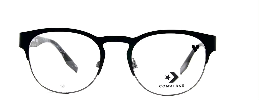 Lentes oftálmicos CONVERSE CV3026 001 51 20. En forma circular. Marco de metal color negro, varillas delgadas de pasta color negro. Peso: 29.7 g