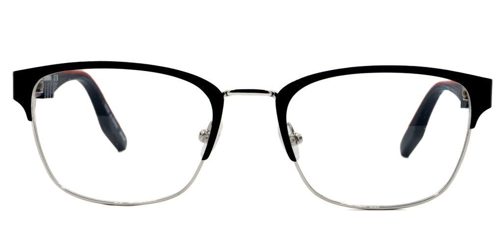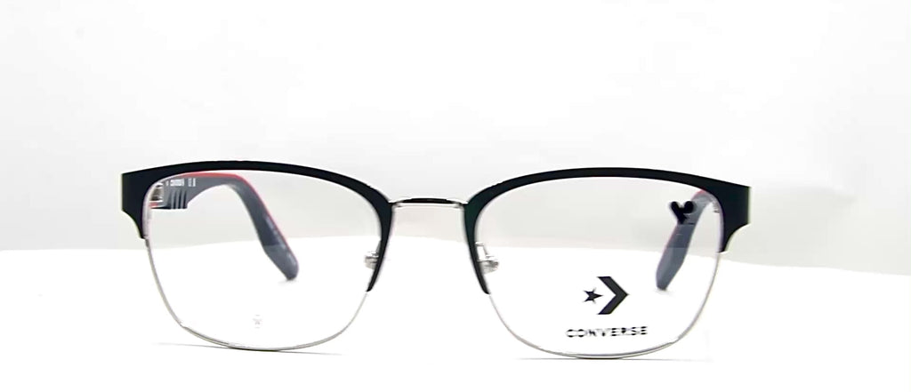 Lentes oftálmicos CONVERSE CV3027 411 51 19. En forma redonda medio cuadrada. Marco de metal color negro, varillas delgadas de metal color negro. Peso: 25.1 g