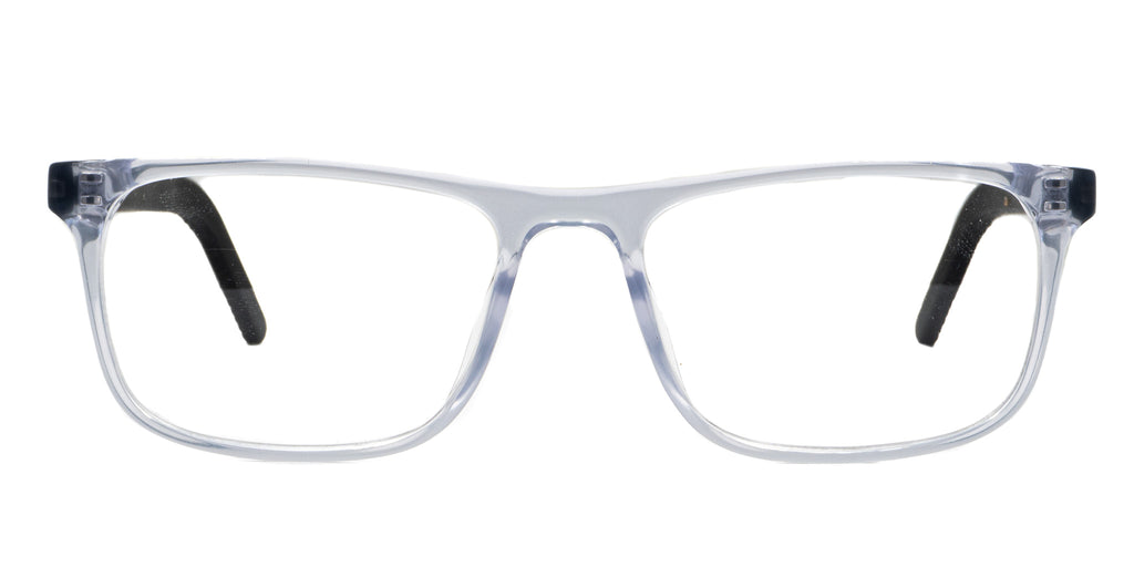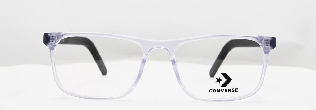 Lentes oftálmicos CONVERSE CV5059 970 53 17. En forma cuadrada. Marco transparente, varillas delgadas de pasta color gris oscuro mate. Peso: 24.3 g