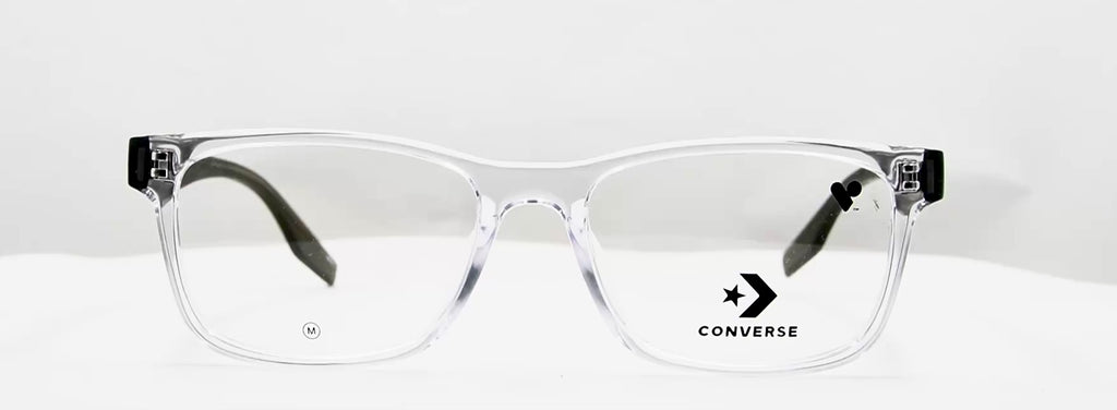 Lentes oftálmicos CONVERSE CV5067 970 54 17. En forma cuadrada. Marco transparente, varillas delgadas de color verde militar oscuro mate. Peso: 27.3 g