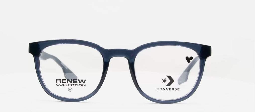 Lentes oftálmicos CONVERSE CV5103 412 49 21. En forma circular. Marco de pasta color azul marino, varillas delgadas de pasta color azul marino. Peso: 19.5 g