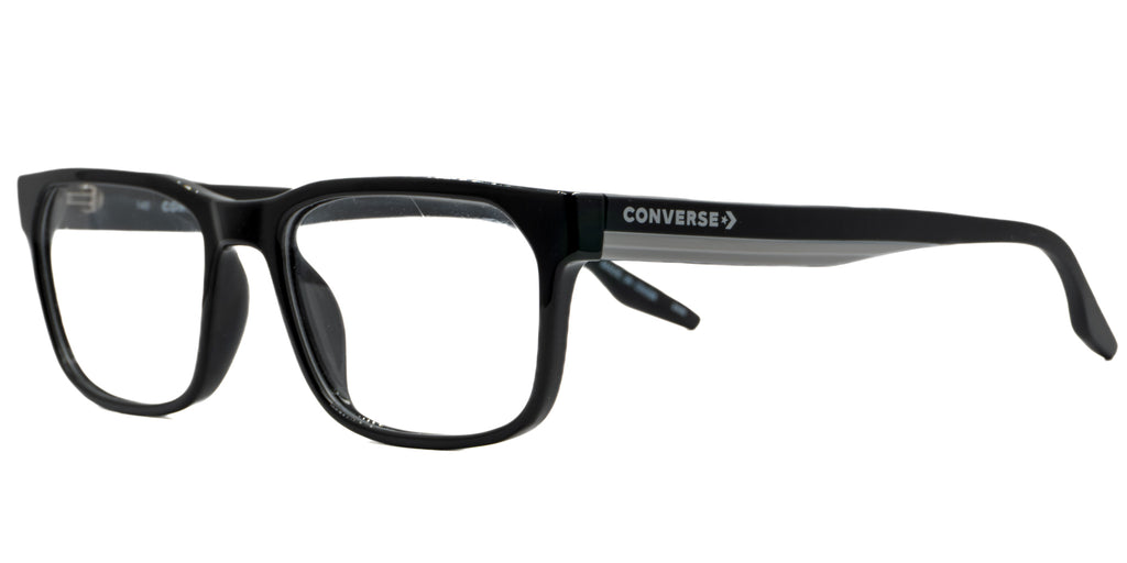 Lentes oftálmicos CONVERSE CV5111 001 52 17. En forma cuadrada, rectangular. Marco de pasta color negro completo, varillas delgadas de pasta color negro con gris oscuro. Peso: 23.3 g
