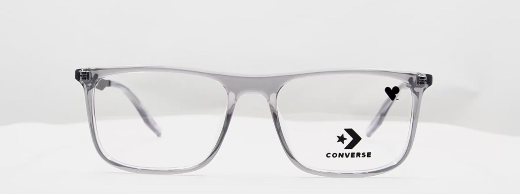 Lentes oftálmicos CONVERSE CV8006 050 53 17. En forma cuadrada. Marco transparente, varillas delgadas de metal color gris oscuro mate. Peso: 19.0 g