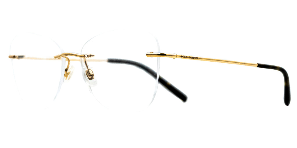 Lentes Oftalmicos DOLCE & GABBANA DG 1299 02 56 15 140. En forma cuadrada 3 piezas, marco de color dorado, varillas delgadas de metal color dorado con terminacion en pasta color café con negro carey. Peso: 21.3 g