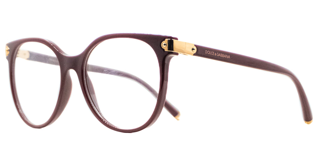 Lentes Oftalmicos DOLCE & GABBANA DG 5032 3091 53 17 140. En forma circular, marco de pasta color rojo oscuro, varillas delgadas de pasta color rojo oscuro. Peso: 22.1 g