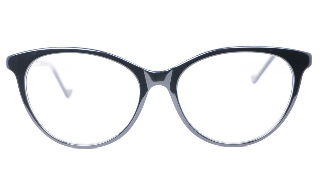 Lentes oftálmicos DOROTHY GAYNOR VDY.A24BA.0BLK.54 en forma circular tipo cat eye. Marco de pasta color negro completo. Varillas delgadas de pasta color negro con un diseño de metal color dorado en los laterales. Peso: 25.9 g