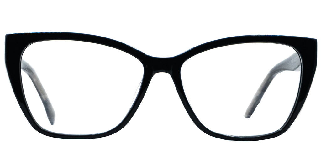 Lentes Oftalmicos GAP VGP022 BLACK 53 14 140. En forma ovalada estilo cat eye, marco de pasta color negro completo con varillas delgadas de pasta color negro con terminacion en transparente. Peso: 26.6 g