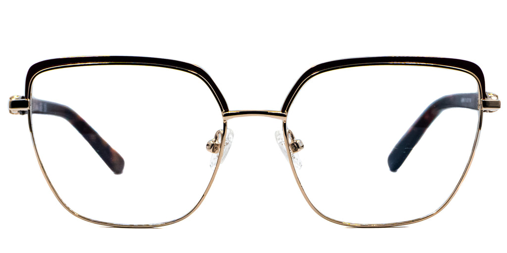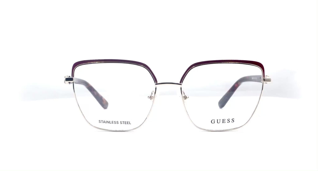 Lentes oftálmicos GUESS GU2983 071 56 17 140. En forma cuadrada-hexagonal, marco de metal color dorado con vino, varillas delgadas de pasta color negro con vino carey. Peso: 26.9 g