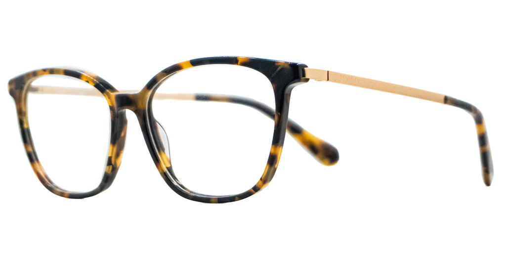 Lentes Oftalmicos KENNETH COLE KC0956 053 53 15 140. En forma cuadrada bordes redondeados, marco de pasta color negro con café carey, varillas delgadas de metal color dorado con terminacion en pasta negro con café carey. Peso: 20.4 g