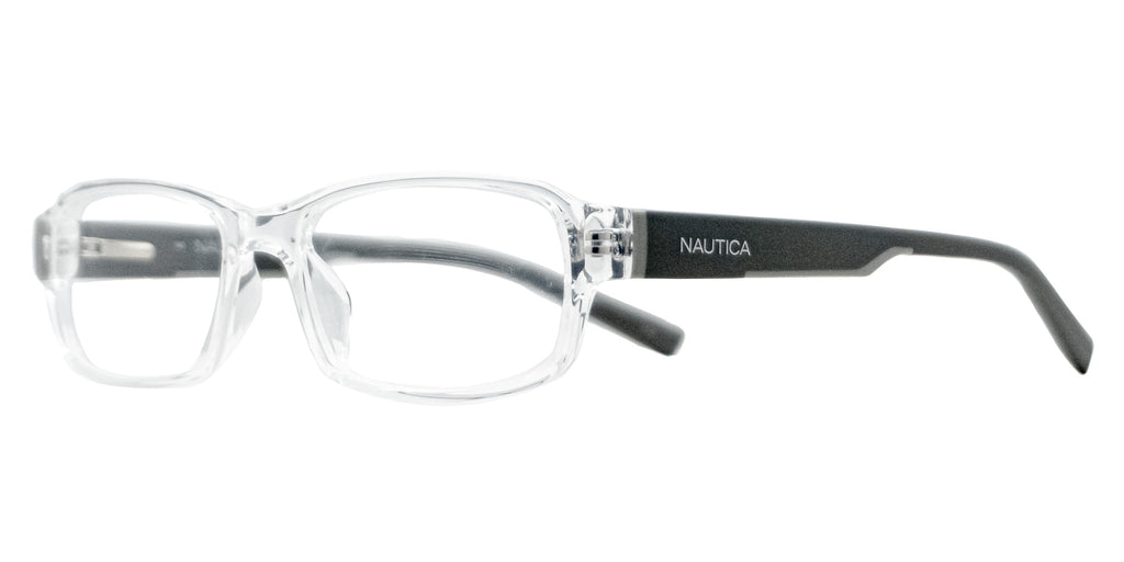 Lentes Oftalmicos NAUTICA N8174 909 54 17 145. En forma rectangular, marco de pasta traslucido, varillas delgadas de pasta gris oscuro. Peso: 19.7 g