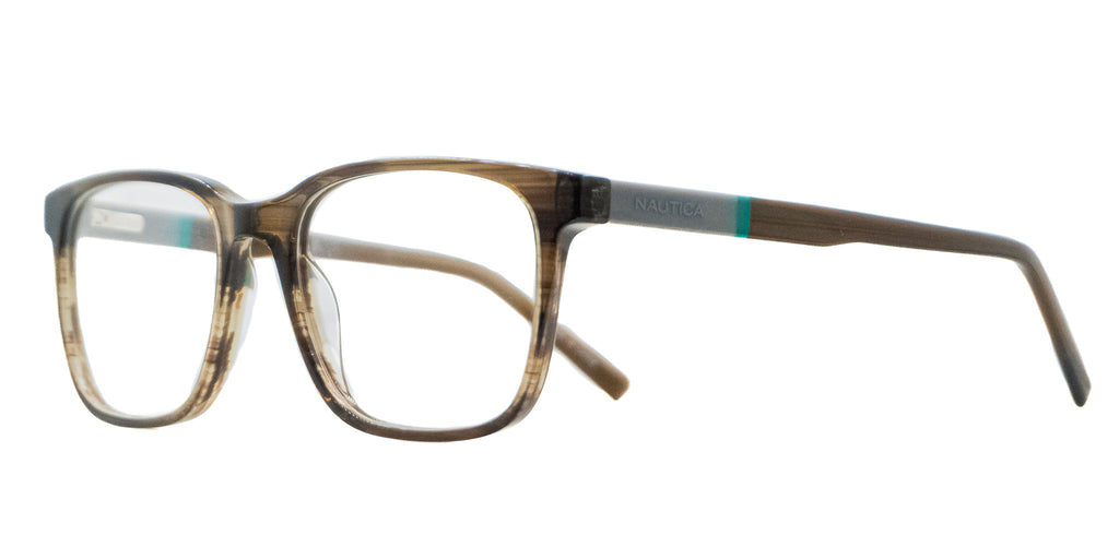 Lentes Oftalmicos NAUTICA N8179 221 52 18 145. En forma cuadrada, marco de pasta café oscuro traslucido, varillas delgadas de pasta gris con café oscuro traslucido. Peso: 22.7 g