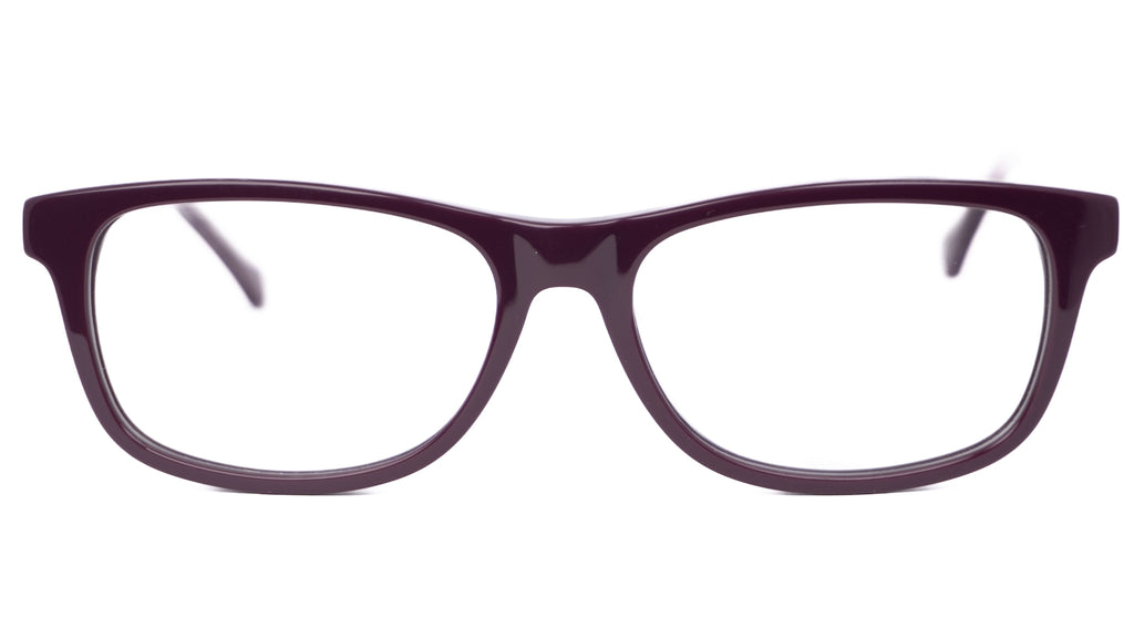 Lentes oftálmicos OZONO VCO.0490A.0BRN.54 en forma cuadrada/ rectangular. Marco de pasta color purpura oscuro. Varillas delgadas de metal color plateado con purpura oscuro con terminación de pasta color purpura traslúcido. 25. 3 g