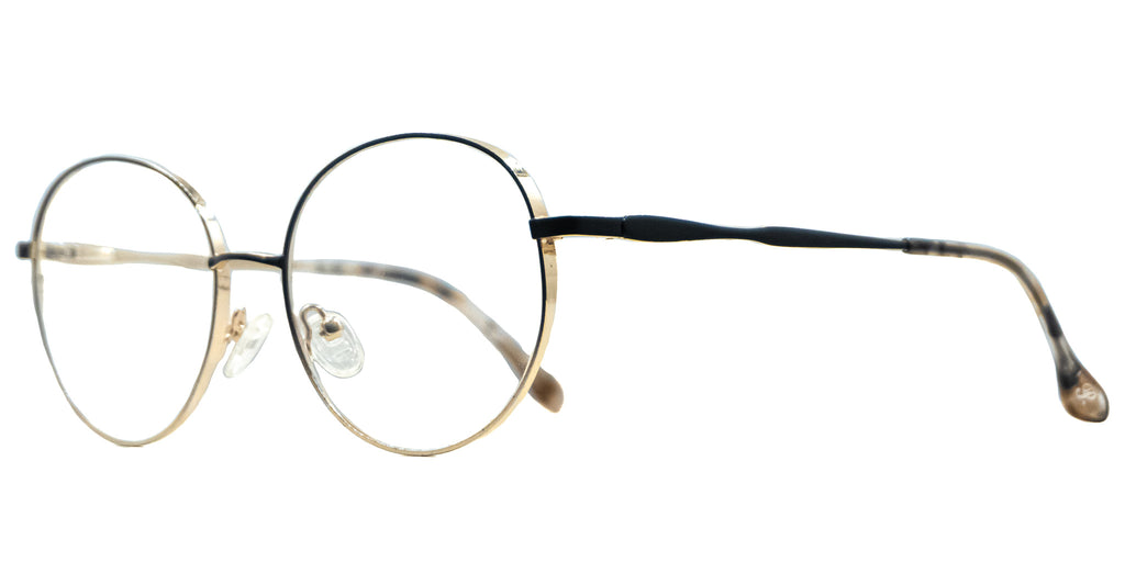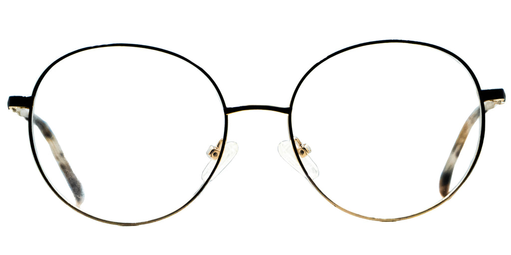 Lentes Oftalmicos PARIS HILTON PH048 54 17 140 C1. En forma circular, marco de metal color dorado con negro, varillas delgadas de metal color dorado con negro, terminacion en pasta café carey. Peso: 21.1 g