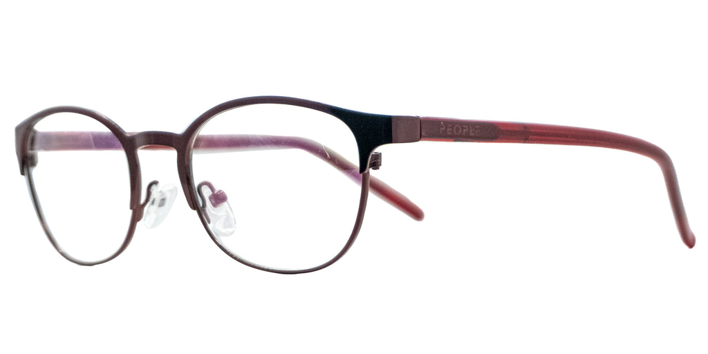 Lentes Oftalmicos PEOPLE PE 400 4 51 19 138. En forma ovalada, marco de metal color rojo cereza, varillas delgadas de pasta color rojo cereza. Peso: 20.3 g