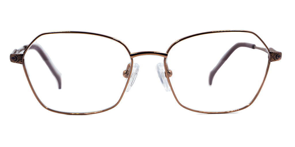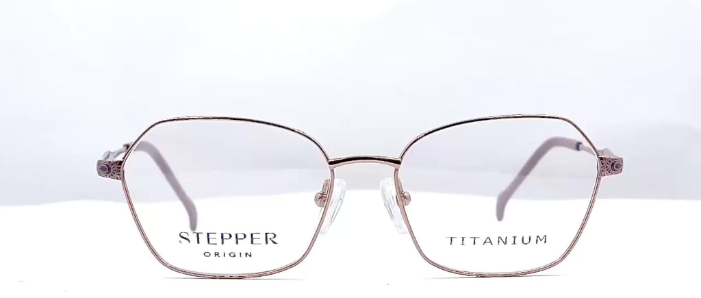 Lentes oftálmicos STEPPER 130 SI 50264 F013 51 15 TITANIUM. En forma hexagonal, marco de metal color dorado-cobrizo, varillas delgadas de metal color dorado-cobrizo con terminacion en pasta color negro. Peso: 10.6 g