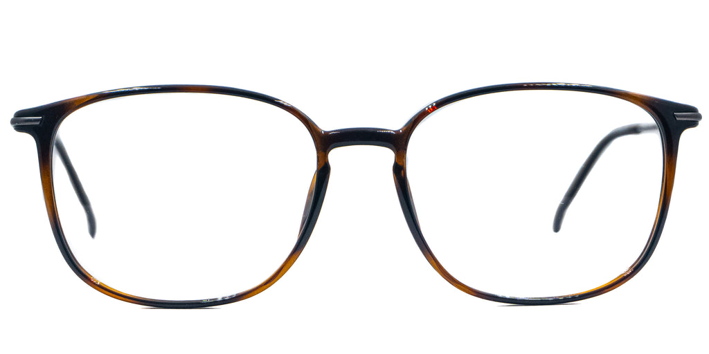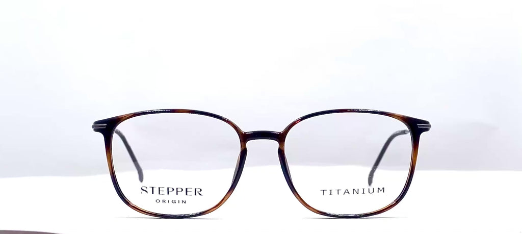 Lentes oftálmicos STEPPER 135 SI 20141 F190 51 16 TITANIUM. En forma circular, marco de pasta color cafe con negro estilo carey, varillas delgadas de metal color plateado con terminacion en pasta color negro. Peso: 10.3 g