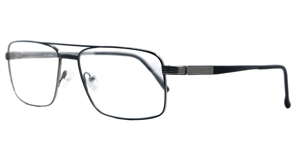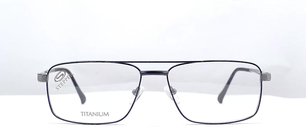 Lentes oftálmicos STEPPER 145 SI 60072 F092 60 16 TITANIUM. En forma rectangular tipo aviador, marco de metal color negro completo, varillas delgadas de metal color plateado con negro y terminacion en pasta color negro. Peso: 17.9 g