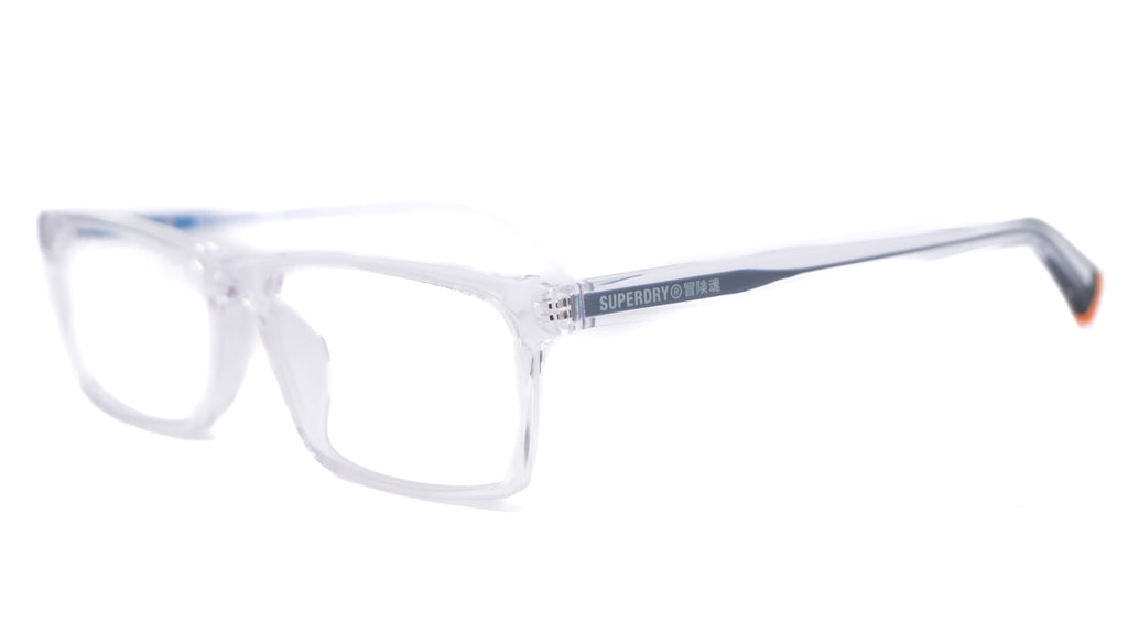 Lentes oftálmicos SUPERDRY K01 SDO 3001M C 113 56 16 145 en forma cuadrada/ rectangular. Marco de pasta blanco traslúcido. Varillas delgadas de pasta color blanco traslúcido. Peso: 26.4 g