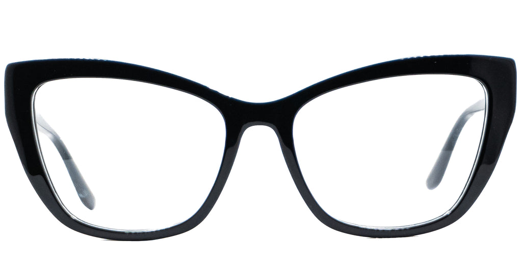 Lentes Oftalmicos THALIA SODI VTL 03066 0BLK 55. En forma cuadrada tipo cat eye, marco de pasta color negro, varillas delgadas de pasta color negro con adorno en los laterales. Peso: 29.1 g